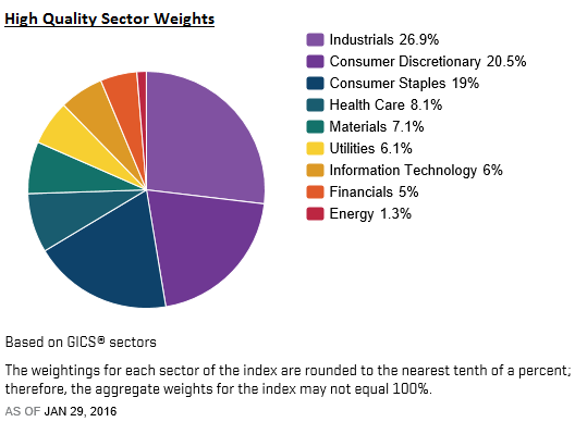 - S&P High Quality Rankings are designed for exposure to constituents of the S&P 500 identified as high quality stocks, i.e., stocks with Quality Rankings of A- and above.