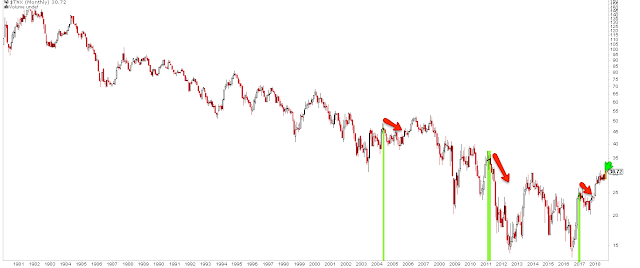 By January 2018, equity allocations had increased to +55% overweight, the highest level in nearly 3 years. Outside of 2013-14, over +50% overweight has historically been bearish. Our view was that "this is a headwind to further gains."
