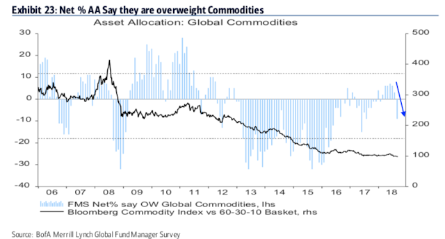 Among the various ways of measuring investor sentiment, the Bank of America Merrill Lynch (BAML) survey of global fund managers is one of the best as the results reflect how managers are allocated in various asset classes. These managers oversee a combined $600b in assets.