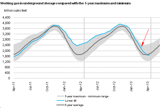 Source: EIA (blue = latest gas in storage for lower 48 states)
