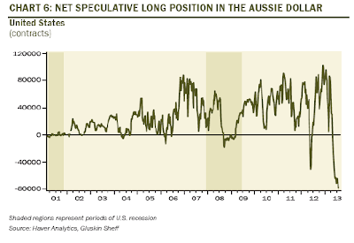 Large speculators (read: hedge funds) are also in a crowded short on the China and commodity sensitive Australian Dollar: