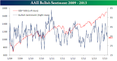 This is a tactical bullish call for a few weeks. The AAII's latest sentiment survey (via Bespoke) shows that bullish sentiment has retreated, which should be supportive of a rally.