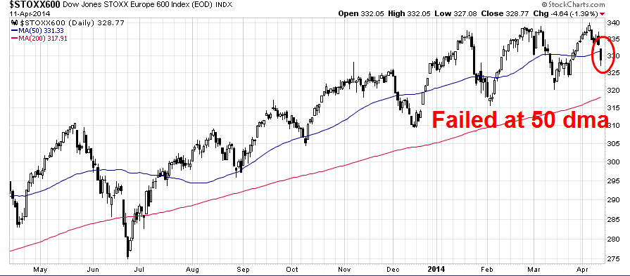 The carnage was not just isolated in America. European equities, as measured by the STOXX 600, also violated its 50 dma, though its uptrend remains intact.