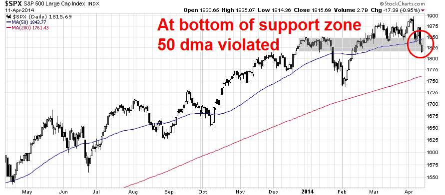 Last week was an ugly week for US equities. Though it wasn't that long ago that the SPX made a new all-time high, major averages fell, led by the NASDAQ and small caps. The decline of the SPX violated the 50 day moving average (dma) and ended the week at the bottom of a support zone.