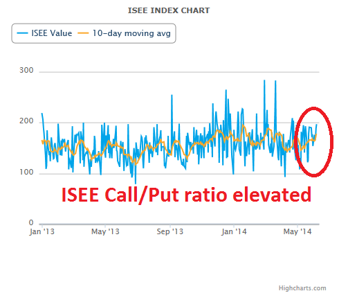 As well, the ISEE equity only call-put ratio is at an elevated reading. These are both contrarian bullish trading signals.