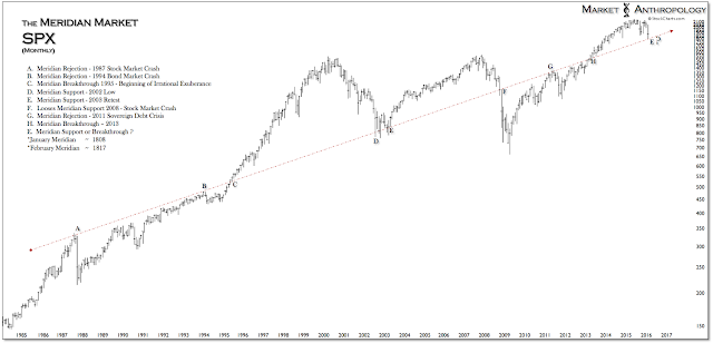 With trading for January coming to a close this week, US equities remain skittish - after breaking through intermediate support last Wednesday around 1860 on the SPX and quickly testing long-term support just above the Meridian at 1808. Although the subsequent rally was sharp and recaptured intermediate support, considering the proximity and significance of the Meridian - the bounce isn't all that surprising or telling just yet.