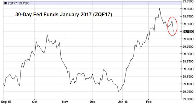The futures markets are starting to react to all these reports, with the Fed Funds futures falling on Friday (lower futures prices imply higher rates).