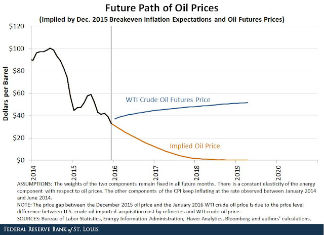 However a number of researches have suggested that with a relatively stable core inflation in the United States, oil prices would need to collapse to levels that are neither consistent with today's forward curve nor sustainable. Therefore, these studies argue, the current market-based inflation expectations are simply irrational.