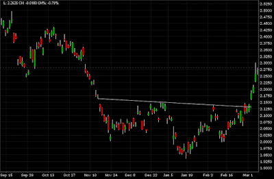 It's probably fair to say that if this is just a short-covering rally, it's probably getting long in the tooth. Copper has reacted just as you'd want following last week's break of the inverted head-and-shoulders neckline, but is already some 2/3 of the way to the target of 2.33 or so.