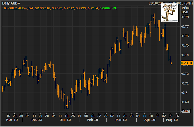 Indeed, one wonders if the RBA's Glenn Stevens worked for the Looney Tunes organization in his youth. Not since Mel Blanc was in his pomp has Macro Man seen as elegant a rendition of one of Wile E. Coyote's cliff jumps as the one the AUD has performed since the release of CPI last month.