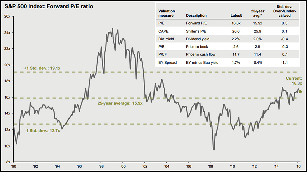For a glance at market valuations, JP Morgan presents a mixed picture…