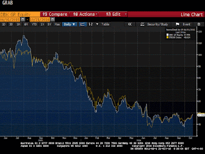 Through this week, Deutsche Bank shares have advanced four consecutive weeks. During this streak, the share price hasrallied 15.5% and is back to where is was when the US fine was announced. Italian bank shares are up for the sixth consecutive session today and putting the final touches on the third weekly advance. During this run, the index is up nearly 11%.