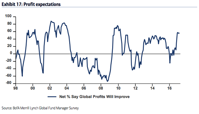 Similarly, 57% expect better profits in the next year, a 7-year high. This also explains their renewed enthusiasm for equities.