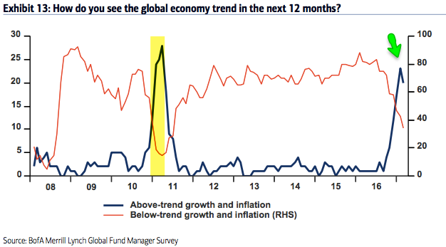 Similarly, fund managers' growth expectations are at the highest level since early 2011, at which time yields fell (highlights).