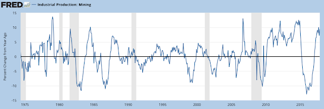Weakness in total industrial production had been concentrated in the mining sector; the past two years had the worst annual fall in more than 40 years. It is not unusual for this part of industrial production to plummet outside of recessions. With the recovery in oil/gas extraction, mining rose 9% yoy in November.