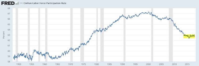 The labor force participation rate (the percentage of the population over 16 that is either working or looking for work) has recently stabilized, rising to a 4-year high in September. The participation rate has been falling since 2001 as baby boomers retire, exactly as participation started to rise in the mid-1960s as this group entered the workforce. Another driver is women, whose participation rate increased from about 30% in the 1950s to a peak of 60% in 1999.