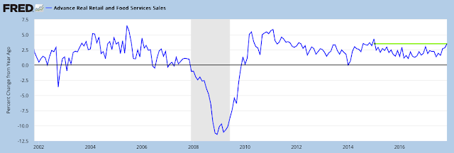 Demand: Real demand growth has been 2-3%. In November, real personal consumption growth was 2.7%. Real retail sales (including gas) grew 3.5% yoy in November, making a new ATH.