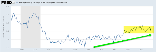 Real (inflation adjusted) GDP growth through 3Q17 was 2.3% yoy. 2.5-5% was common during prior expansionary periods prior to 2006.