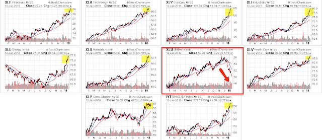 US markets are off to a fast start in 2018. SPX and DJIA are up 4% and NDX is up 5.5% (from Alphatrends). Enlarge any chart by clicking on it.