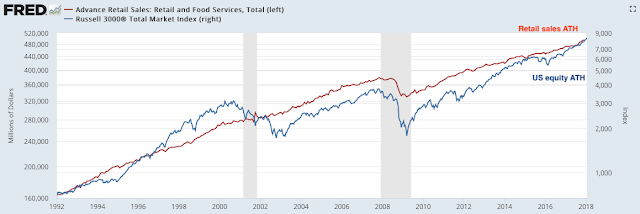 Fourth, economic data continues to be both strong and better than expected. Retail sales grew more than 3% (real) in December, making another ATH. Recent housing and manufacturing growth has been exceptional.