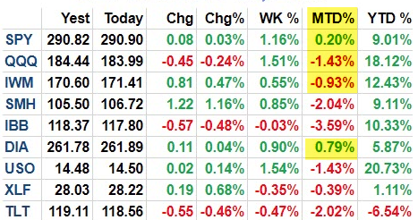 On the calendar over the next two weeks: housing starts this Wednesday and OpX on Friday; FOMC and new home sales a week from Wednesday, GDP and durable goods that Thursday and PCE that Friday (from IBD Investors).
