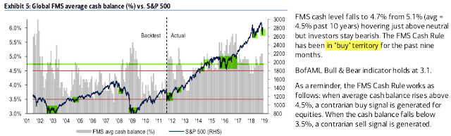 Cash: Investors' cash balance is high at 4.7%Ā (BAML considers cash levels above 4.5% to be a contrarian buy for equities, and below 3.5% to be a contrarian sell). This is supportive of further gains in global equities.Ā A recap: