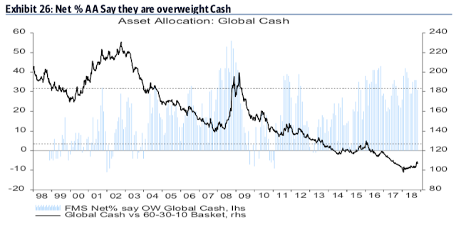 Among the various ways of measuring investor sentiment, the Bank of America Merrill Lynch (BAML) survey of global fund managers is one of the best as the results reflect how managers are allocated in various asset classes. These managers oversee a combined $600b in assets.