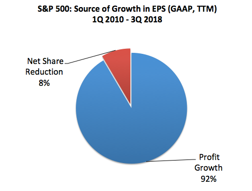 In fact, the impact of share reduction has declined over the past two years as the difference between EPS and profits has markedly narrowed.