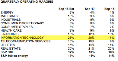 But no large sector has done better than technology, where margins have shot up from 17% to 23% in the past 2 years. This partly explains why the technology sector has outperformed the S&P index.
