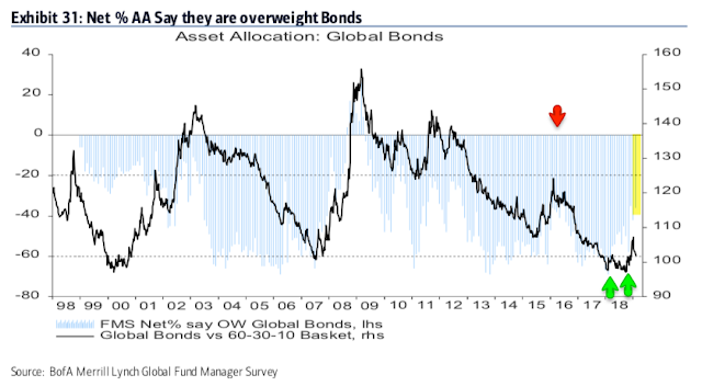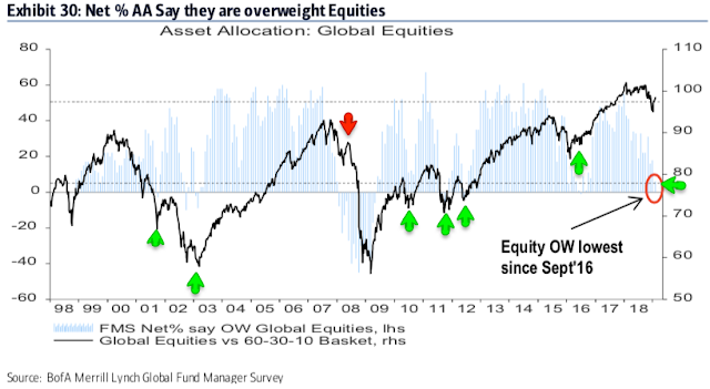 Their global equity allocations are now the lowest in 2-1/2 years. This is a bearish extreme, similar to 2010 and 2016.