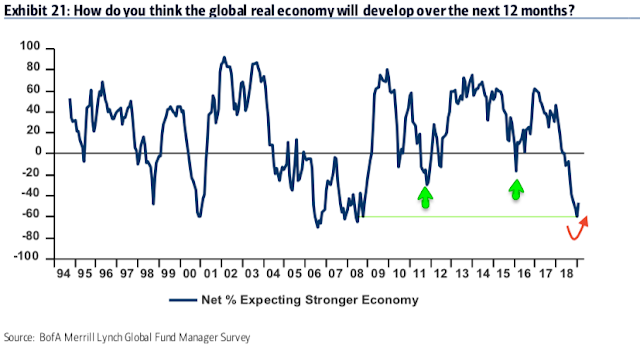 Their global macro growth expectations are the most pessimistic in 10 years, more than at the major equity bottoms in 2011 and 2016.