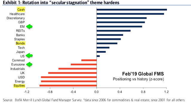 US equity allocations are at a 9 month low. European equity allocations are coming off a 6-1/2 year low in January. Emerging markets have become the consensus long.