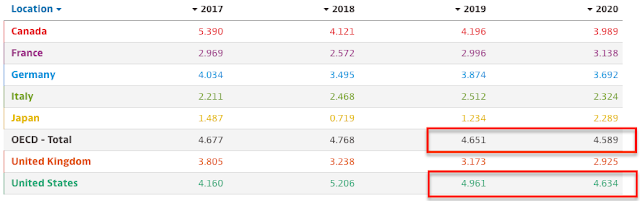 First, as a baseline, it is reasonable to assume that corporate (non-energy) sales growth will be largely similar to the nominal economic growth rate of 4-5%, excluding currency effects. Right now, this seems achievable (from the OECD).