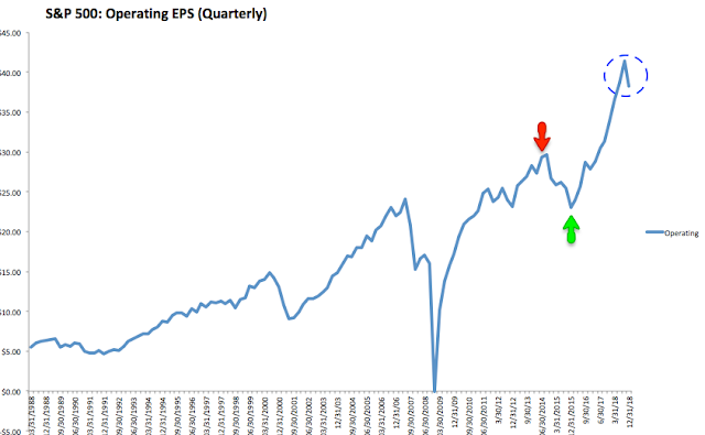 Importantly, EPS fell this quarter from its all-time high in 3Q18, the first substantial fall since the "profit recession" in 2015.