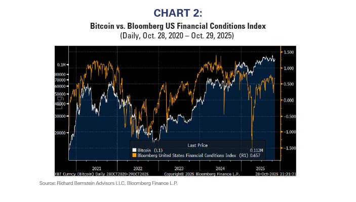 Our research suggests cryptocurrencies and gold are not similar asset classes. Cryptocurrencies act like speculative investments driven primarily by financial liquidity conditions, whereas gold appears to be a ballast against uncertainty.