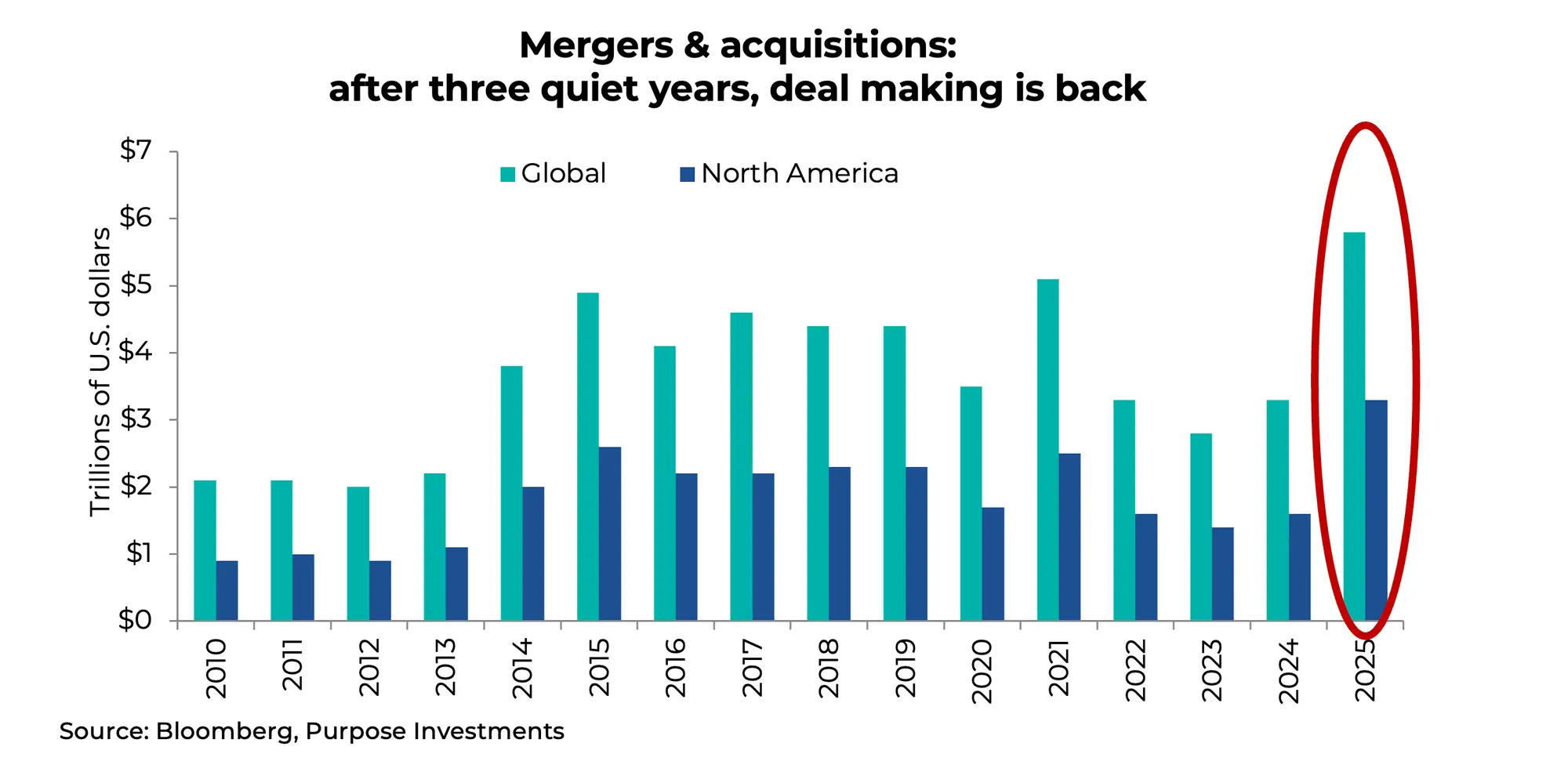This is another good news story. M&A activity has been picking up. Few things help the performance of a small-cap name more than being purchased. Deal-making was rather suppressed globally from 2022–2024, but it started to reaccelerate in 2025. We believe this momentum will continue, which is good for smaller caps.