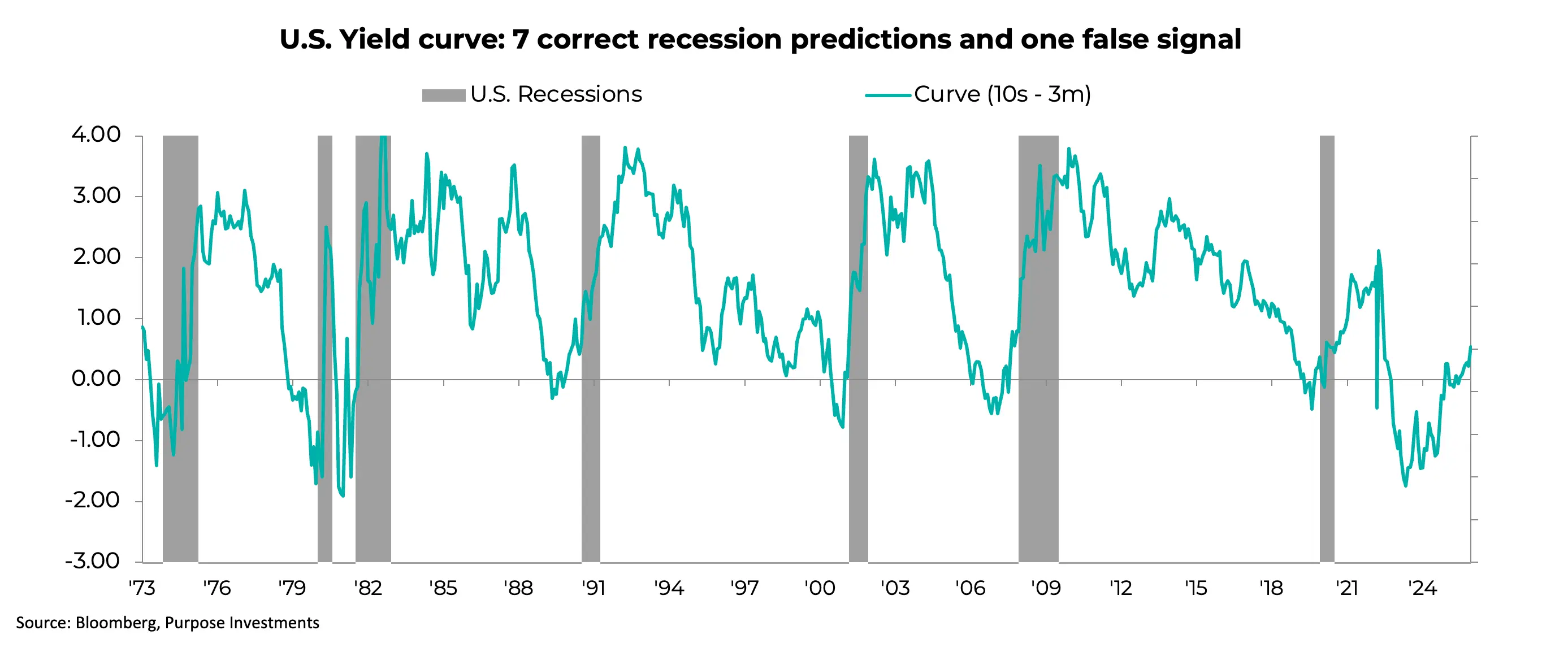 The U.S. yield curve used to have a perfect record signalling recessions. If it inverted, there was a recession coming soon. Seven times this happened, and seven times a recession manifested. It even got the Covid one right, and that was one unique recession. But then it inverted in 2023, and there was no recession, marking its only false signal in 50 years. Seven out of eight ain’t bad.