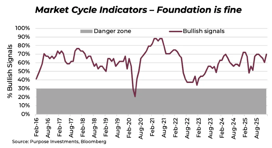 The drop in gold on Friday, leading to a big drop for the TSX, is certainly a biggie and highlights the risk of a purely momentum-driven market for gold. Could this rattle the confidence of the markets? Perhaps. More likely, it is a consolidation after such a strong climb. On the positive side, the underlying foundation remains healthy, and if the market pulls back enough, it could create an opportunity. For now, we remain tilted defensively.